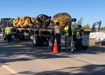 BREAKING: (Hubbard County, Minnesota north of Shell River) Water Protectors blockade semi loaded with drilling equipment for Minnesota rivers, 2 lockdowns in progress.